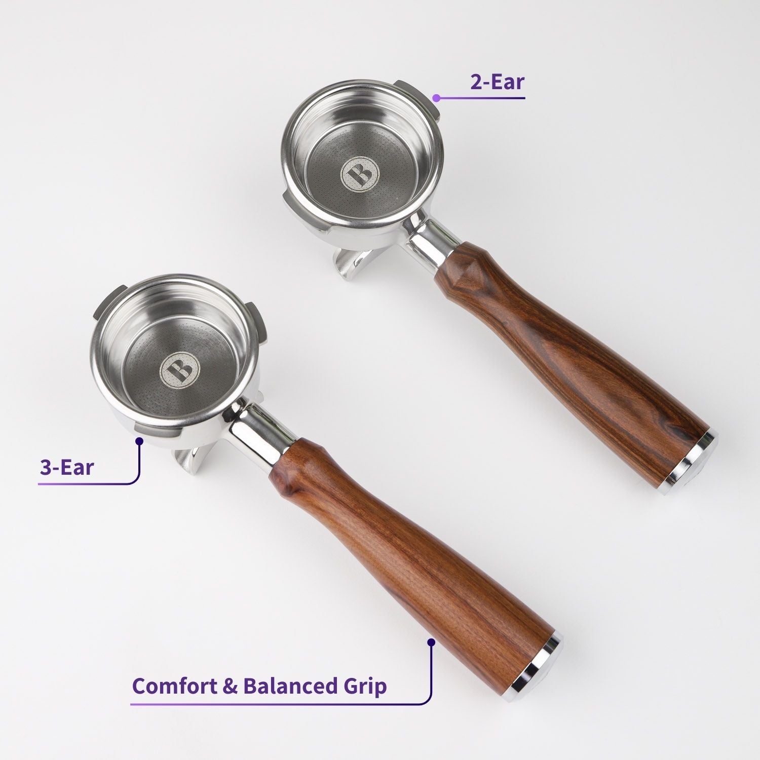 Sunbeam 58mm 3-Ear double spout portafilter is designed to work with EM4300K, EM5300K, EMM5400 and EMM7300SS machines.